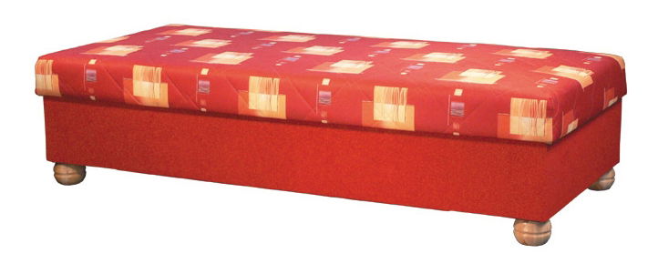 Jednostavan krevet za jednu osobu opremljen sendvič madracem. Ojačani, ventilirani prostor za odlaganje na drvenim nogama.