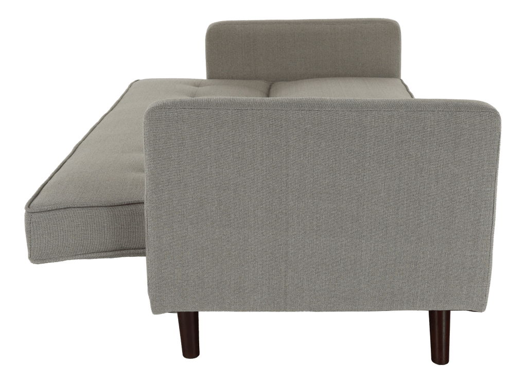 Elegantan kauč Orgus koji kombinira moderni i skandinavski stil. Može se razvući na površinu 167 x 105 cm. Presvučen je sivo smeđom tkaninom koja se lako može kombinirati s dodatcima i drugim komadima namještaja.