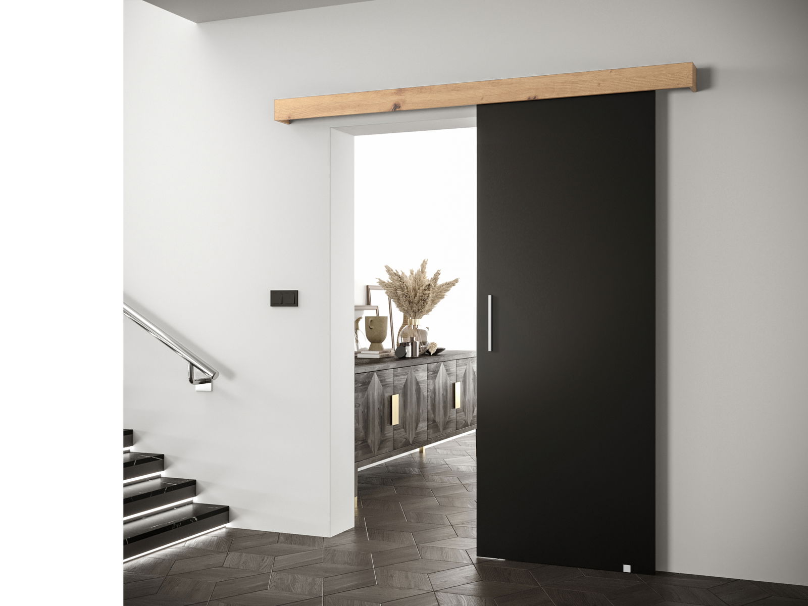 Klizna vrata 90 cm Sharlene I (crna mat + hrast artisan + srebrna)