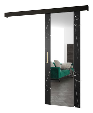 Klizna vrata 90 cm Sharlene II (mramor crni + crna mat + zlatna) (s ogledalom)