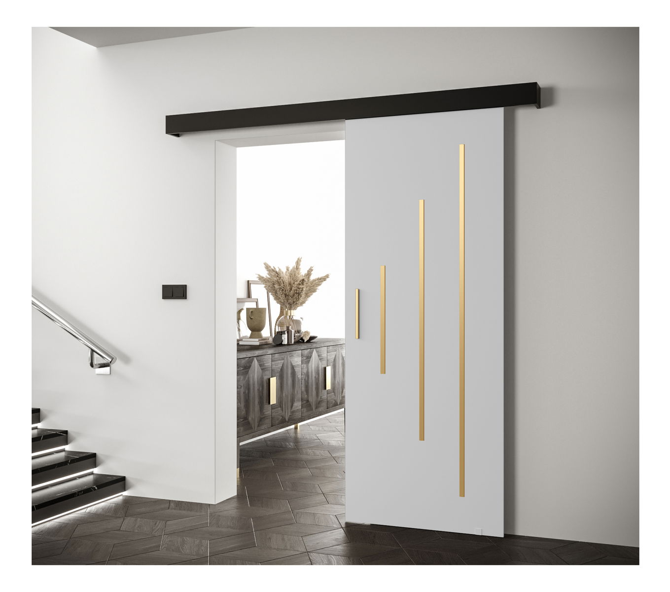 Klizna vrata 90 cm Sharlene Y (bijela mat + crna mat + zlatna)