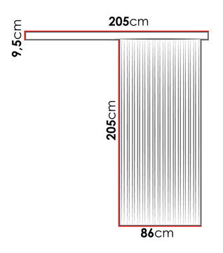 Unutarnja klizna vrata su idealan izbor za one koji traže udobnost i stil. Dimenzije vrata odgovaraju otvorima u zidu širine do 80 cm: širina: 86 cm, visina: 205 cm, udaljenost vrata od zida: 1,5 cm. Dimenzije maske: širina: 205 cm, visina: 9,5 cm. Vodilica: 200 cm. Izvedba: debljina 16 mm laminirana iverica, rubovi od PVC-a debljine 0,5 mm, 2 cm debele crne plastične letvice koje se samoljepe, bez ručki – vrata se otvaraju pomoću letvica, klizni sustav Herkules, gornja maska u mat crnoj boji, pokrivena je samo prednja strana, bočne strane nisu pokrivene, vrata imaju graničnik koji ih drži u određenom položaju, krilo vrata se pomiče po vodilici montiranoj iznad otvora vrata ispod fasade, maska panela strši 5,1 cm od zida, samozatvarajući mehanizam koji sprječava udarce pri zatvaranju uključen je u cijenu, stražnja strana vrata je glatka i bez umetaka, vrata su izrađena od najkvalitetnijih materijala, mogu se montirati na lijevu ili desnu stranu (univerzalna vrata). Napomena: prezentirana klizna vrata ne bi se trebala montirati na zid od gipskartona. Jamstvo: 24 mjeseca.