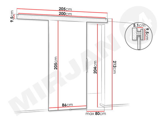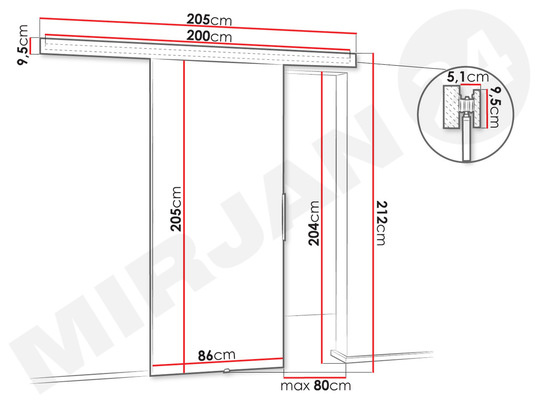 29 cm) – samo s jedne strane,maska vodilice samo sprijeda, bočne strane nepokrivene,klizni sustav s kugličnim ležajevima – metalni,krilo vrata klizi po vodilici montiranoj iznad otvora vrata ispod maske, maska strši od zida 7,5 cm,samozatvarač, sprječava udarce pri zatvaranju – uključen u cijenu,stražnja strana vrata je glatka i ne sadrži ogledalo,Napomena: prezentirana klizna vrata ne bi se trebala montirati na zid od gipsanih pločaGarancija: 24 mjeseca.