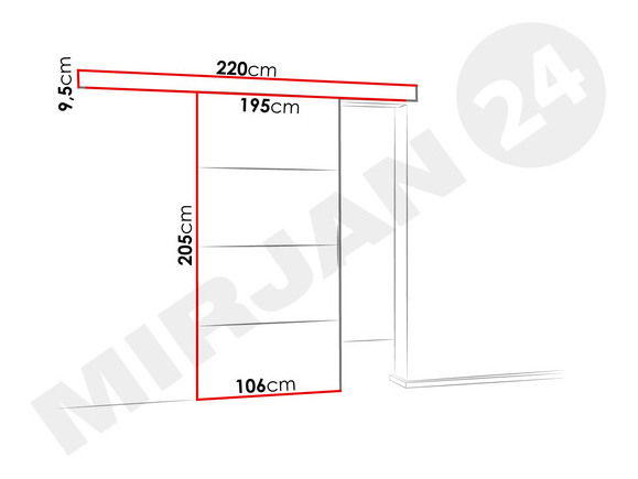 širina: 106 cm, visina: 205 cm (dimenzije vrata prilagođene otvorima u zidu širine do 100 cm)