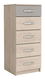 Lijepa komoda s 5 ladica izrađena od folijske ploče od iverice u boji hrast arizona + siva. Isporučuje se u dijelovima.