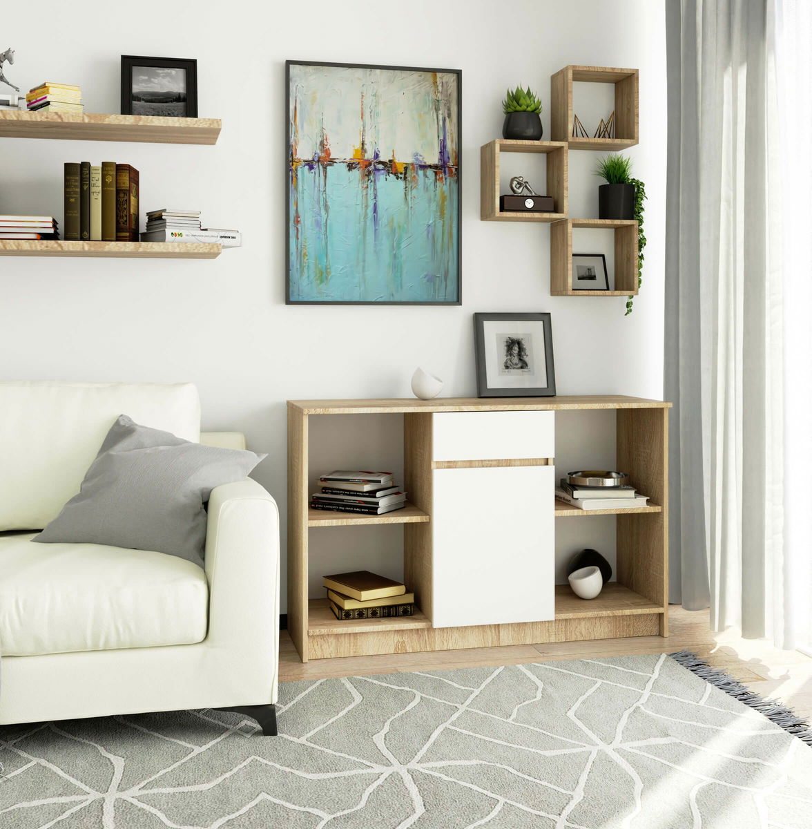 Komoda Blanqueo (hrast sonoma + bijela)