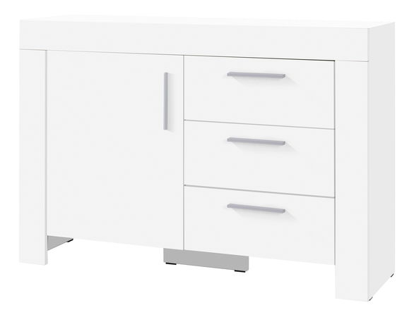 Jednostavan, minimalistički dizajn čistih linija. Komoda s ladicama pruža dovoljno prostora za pohranu.