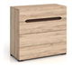 Prostrana komoda KOM4S/90 s 4 ladice. Prve dvije ladice imaju ručku na prednjoj strani, a donje dvije ladice imaju neupadljive ručke na bočnim stranama prednje strane ladice.