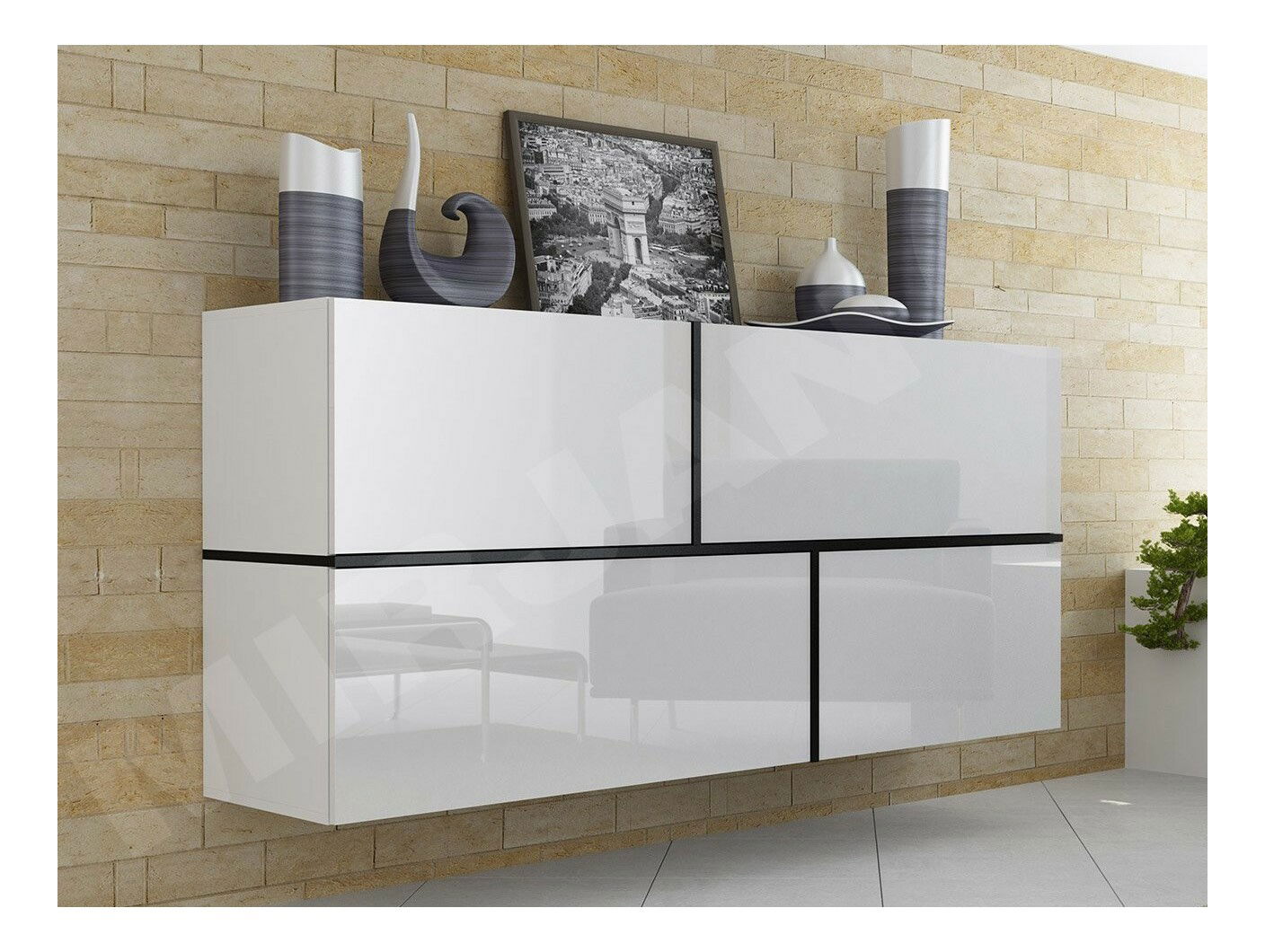 Komoda Goja (bijela + bijeli sjaj + crna) *rasprodaja