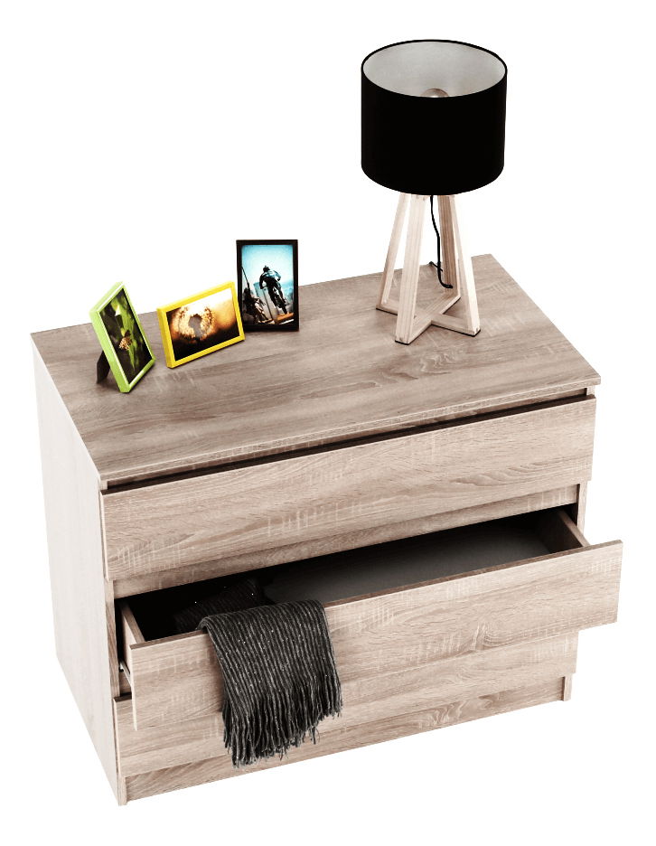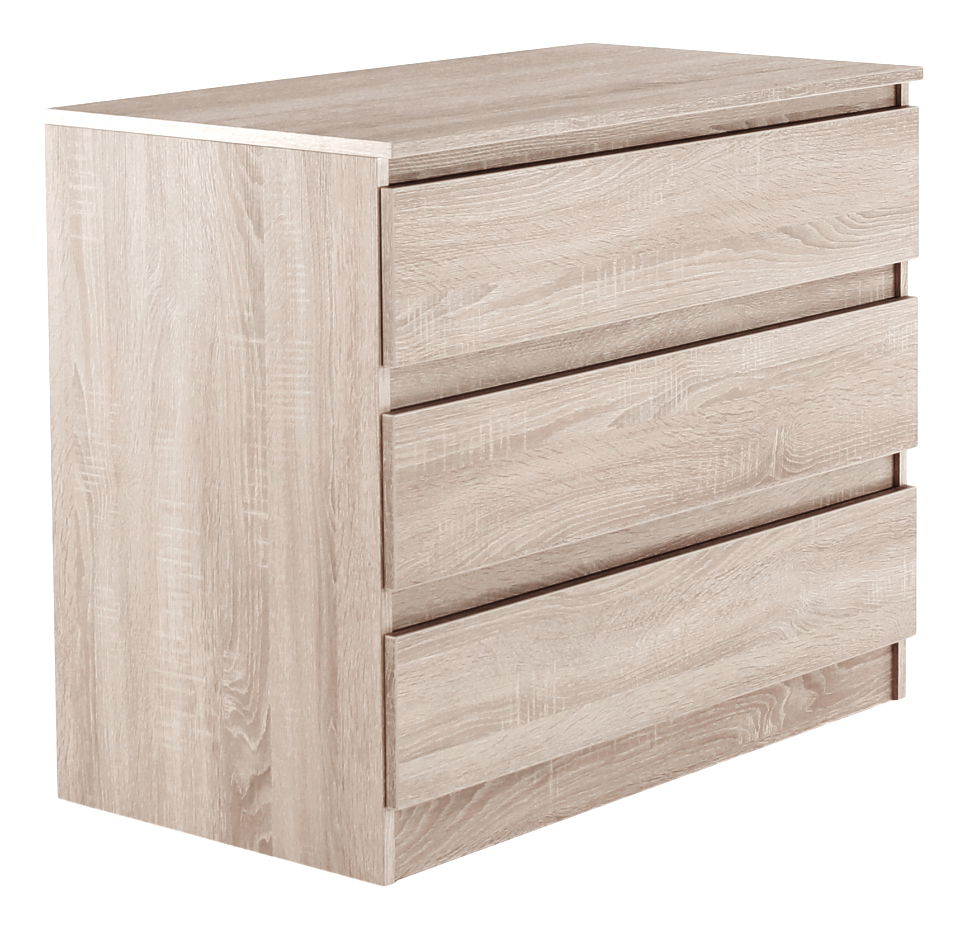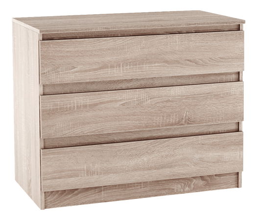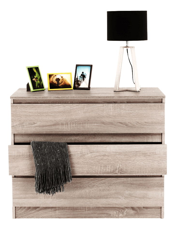 Povećajte svoj dom komodom Hannah New 003. Stavite svoj dom u red u elegantnom paketu. Bez prave organizacije, niti jedan interijer ne može funkcionirati. Razvrstavajte rublje, čuvajte dokumente, nakit, sve što zaslužuje prostor za odlaganje. Netko voli izložiti svoje dragocjenosti divljenju, drugi ih radije skrivaju u sigurnosti. Hannah New 003 komoda će zadržati svoje stvari u tri ladice. Izrađena je od sonoma hrasta i visokokvalitetne laminirane iverice s ABS rubovima. Svidjet će vam se ovaj model zahvaljujući genijalnim detaljima i savršenoj izradi.