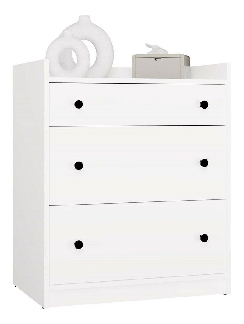 PrikazKomoda Houstossa 1 u elegantnoj bijeloj boji idealno je rješenje za svaki dom, bilo za dječju sobu, spavaću sobu, dnevni boravak ili predsoblje. Njezin minimalistički dizajn i stabilna konstrukcija odlično se uklapaju u razne stilove interijera. S tri prostrane ladice na valjkastim vodilicama nudi dovoljno prostora za pohranu odjeće, tekstila ili drugih sitnica. Povišeni gornji rubovi sprječavaju pad predmeta, čineći je funkcionalnim i sigurnim komadom namještaja. Ova komoda izvrstan je izbor za one koji traže spoj estetike i praktičnosti.