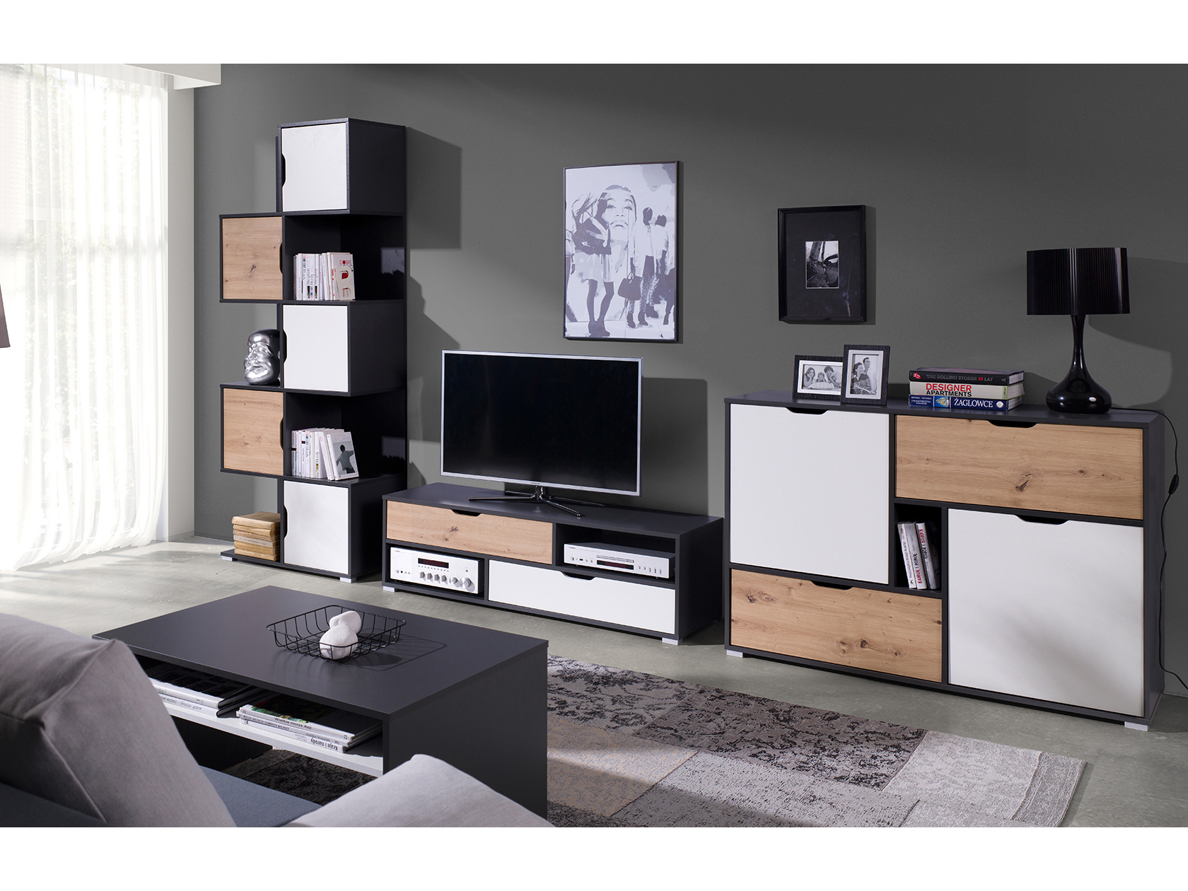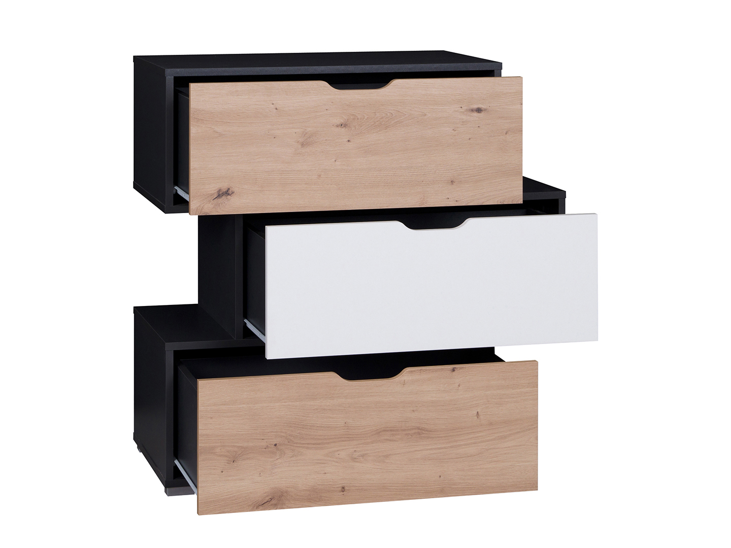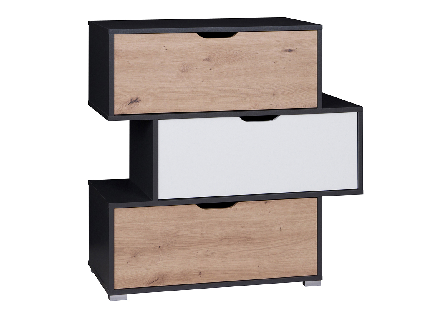 Komoda Iweta K3SZ (grafit + bijela mat + hrast artisan)