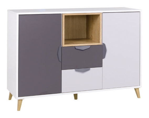 Komoda Juna 8 (bijela + grafit + siva + hrast lefkas)