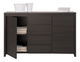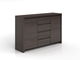Komoda modernog dizajna prikladna za moderno uređene dnevne boravke. S obje strane su vrata, a u sredini se nalaze četiri ladice. Komoda stoji na manjim nogama.
