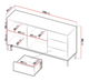 PrikazKomoda je idealan izbor za one koji traže udobnost i stil. Kolekcija Marinez odlikuje se minimalizmom koji se prenosi u univerzalnost namještaja – savršeno će odgovarati modernim, loft i retro interijerima. Jedan od elemenata kolekcije je komoda opremljena s tri ladice i prostranim ormarićem. Ormarić i ladice nemaju klasične ručke, što naglašava minimalistički izgled komode. Ručke su zamijenjene sustavom otvaranja PUSH TO OPEN. Struktura namještaja dodatno se temelji na metalnom okviru s tankim nogama koje savršeno pristaju uz stil komode. Dimenzije: širina: 150 cm, visina: 80 cm, dubina: 41 cm. Izvedba: iverica 16 mm, rub: ABS (vidljiva mjesta), papir (nevidljiva mjesta), stražnja ploča: 3 mm HDF crna ploča, noge: metalni okvir + klizači, panti za brzu montažu, donje vodilice za montažu, otvaranje metodom „push to open“. Dimenzije proizvoda su navedene u centimetrima i mogu se razlikovati od stvarnih za ± 3 cm. Dimenzije namještaja na zahtjev kupaca ne mijenjamo. Jamstvo: 24 mjeseca.