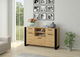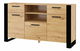 PrikazIznimno elegantna i stilska komoda za dnevni boravak ili spavaću sobu, izrađena u modernim i prirodnim bojama. Odlikuje se suvremenim i oku ugodnim izgledom – njezin šarm određuju velike crne noge u obliku okvira, koje lijepo kontrastiraju s ostatkom namještaja. Komoda ima tri zatvorene police, dvije otvorene police i dvije ladice.