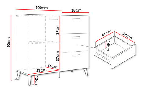 Komoda je idealan izbor za one koji traže udobnost i stil. Komoda za dnevni boravak Rostiw 100 1D3SZ uklopit će se u svaki interijer – dobro će poslužiti u dnevnom boravku kao elegantan komad namještaja za dekoraciju, u spavaćoj sobi kao mjesto za odjeću, a u hodniku će pomoći organizirati prostor za obuću ili dodatke. Komoda u visokom sjaju nudi ladice za sve sitnice koje želite imati pri ruci, ali ne nužno izložene. Možete u njih spremati dokumente, dodatke ili tekstil i tako održavati savršen red u svom prostoru. Dio dizajna komode je i ormarić na zaključavanje, idealan za nešto veće predmete. Dimenzije: širina: 100 cm, visina: 92 cm, dubina: 38 cm. Izvedba: korpus i prednji dio: 16 mm debela iverica, ABS rub, stražnja strana od HDF ploče, noge i ručke: zlatna plastika, nasadne šarke. Jamstvo: 24 mjeseca.