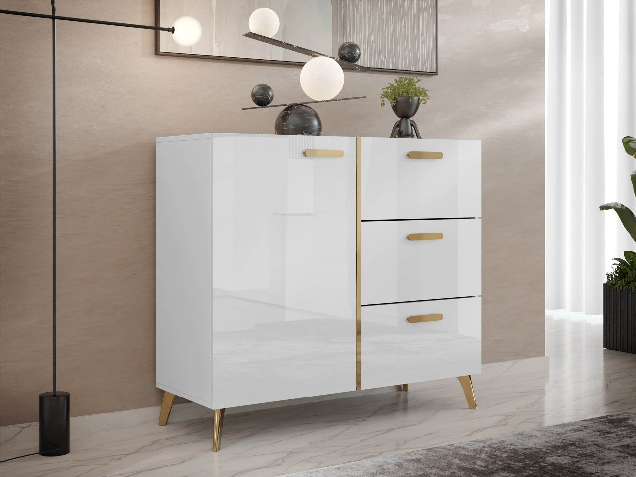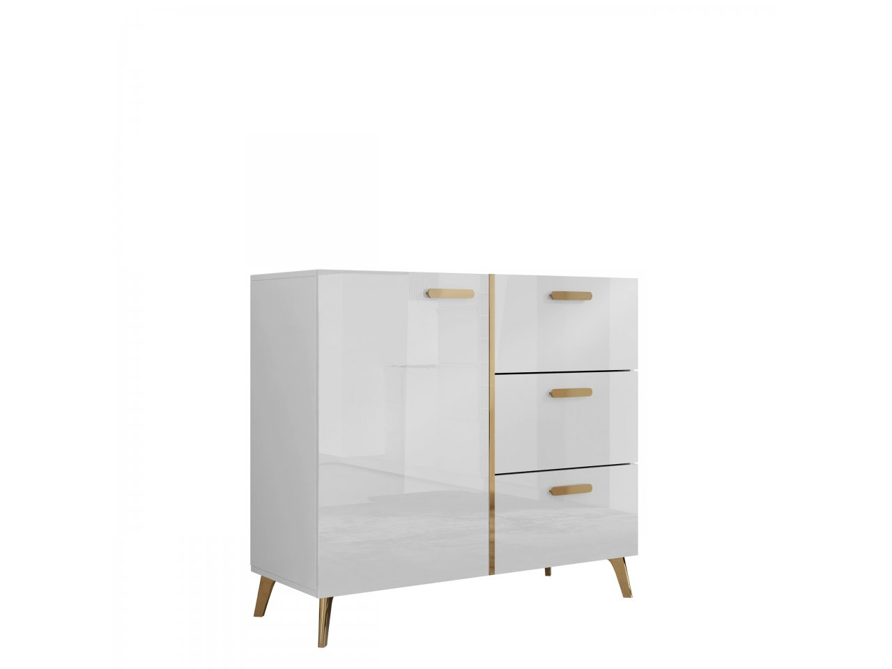 Komoda Rostasi 1D3SZ (bijela + bijela sjajna + zlatna)