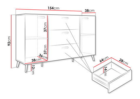 Komoda je idealan izbor za one koji traže udobnost i stil. Dnevna komoda Rostiw 150 2D3SZ savršeno je rješenje za svaki interijer. Odlično će poslužiti u dnevnom boravku kao elegantan dizajnerski akcent, u spavaćoj sobi kao funkcionalan prostor za pohranu odjeće, a u predsoblju će pomoći organizirati obuću i dodatke. Sjajne fronte i zlatni detalji daju komodi na nogicama izvanredan izgled. Prostrane ladice idealno su mjesto za sitnice koje vrijedi imati pri ruci, ali ne moraju biti na vidiku – dokumenti, dodaci ili tekstil naći će u njima svoje mjesto. Dva zaključana ormarića pružaju dodatni prostor za veće predmete. Tako oblikovan interijer komode pomaže održavati red u kućanstvu. Dimenzije: širina: 154 cm visina: 92 cm dubina: 38 cm. Izvedba: korpus i prednji dio: 16 mm debela iverica ABS rub stražnja ploča od HDF-a noge i ručke: zlatna plastika kuglične vodilice. Jamstvo: 24 mjeseca.
