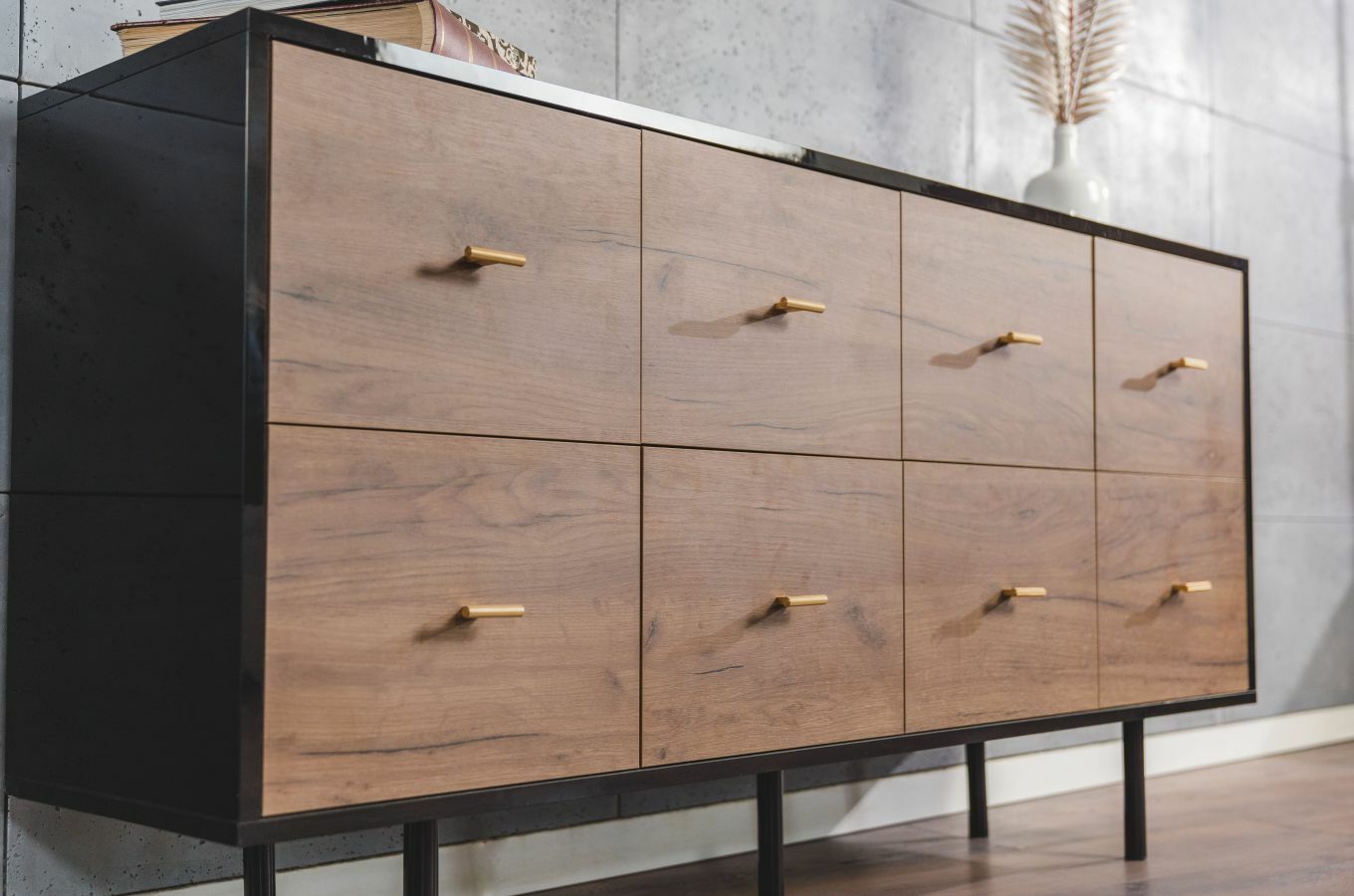 Komoda Sinoit (Hrast craft + sjajna crna)
