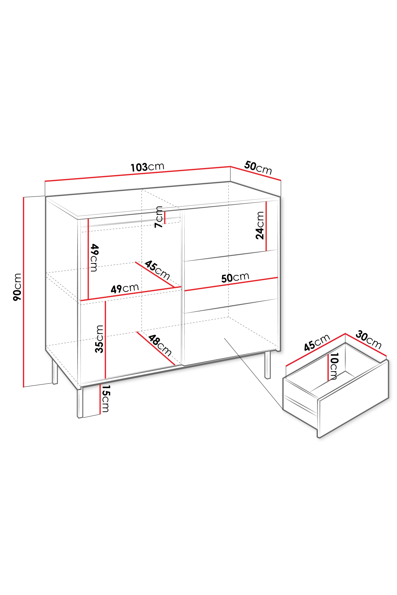 Komoda Somkera 1D3SZ (bijela + crna)