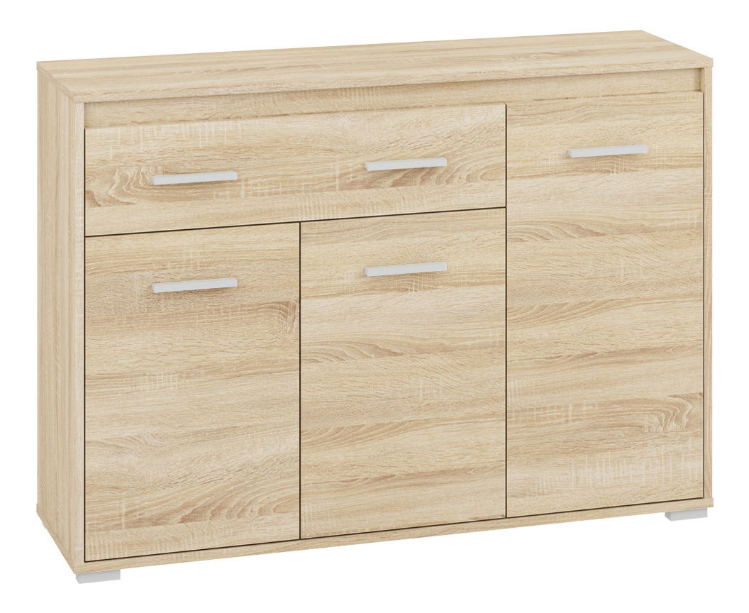 Trodijelna komoda s trojim vratima i jednom ladicom. Jednostavna je i praktična zahvaljujući svojoj konstrukciji. Nudi puno prostora za odlaganje.