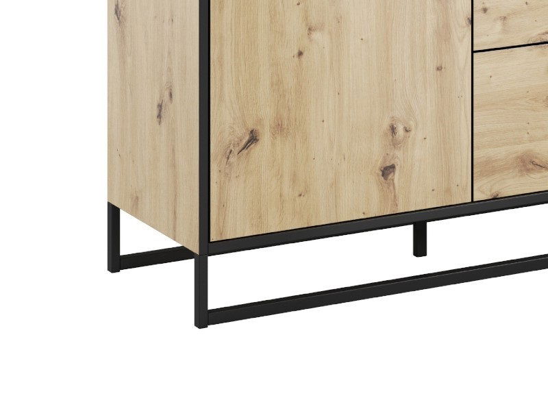 Industrijski dizajn u pažljivoj izradi stvorit će luksuzni dojam u bilo kojem interijeru. Komoda iz serije Bryanna izrađena je u dekoru prirodnog hrasta artisan dopunjenog metalnim nogama i okvirom.