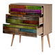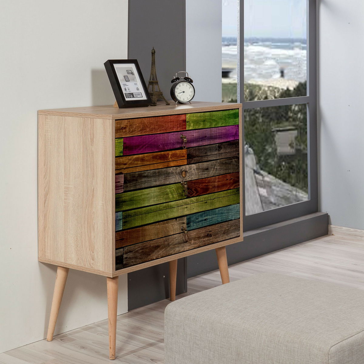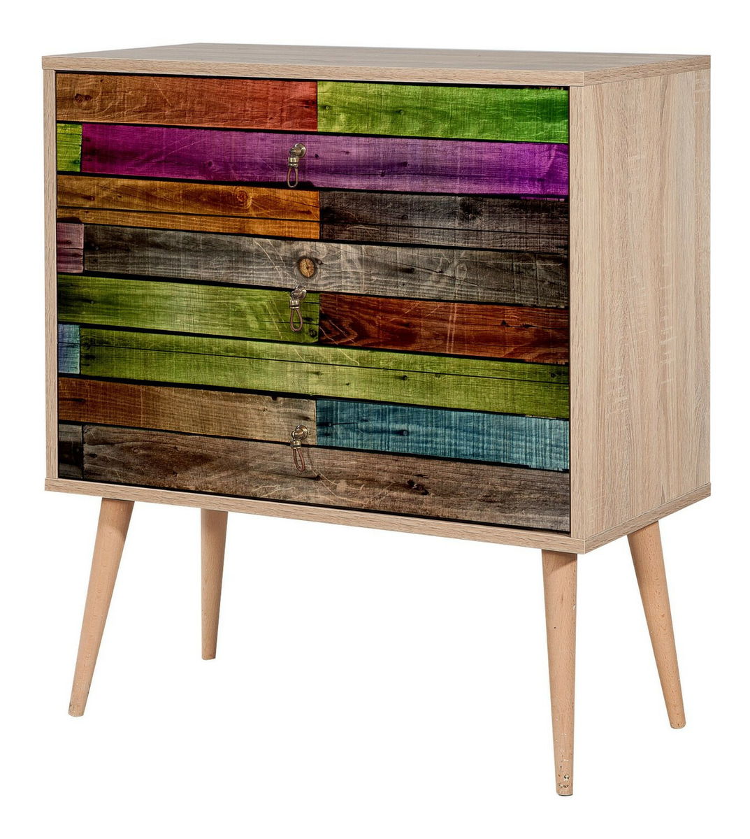 debljina: 18 mm, drvene noge, metalne ručke, uv premaz, širina: 80 cm, visina: 90 cm, dubina: 40 cm, visina ladica: 18,5 cm, visina nogu: 30 cm