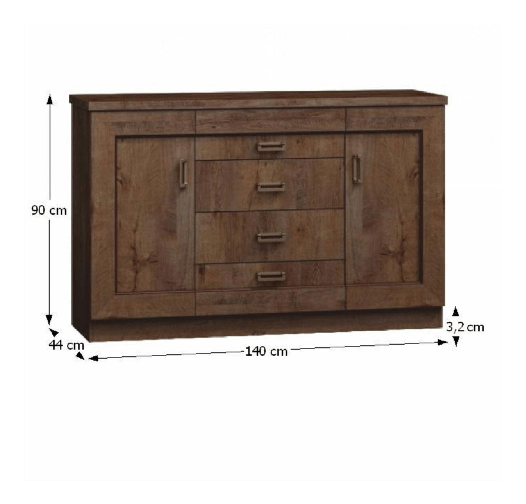 Linija namještaja Tedy za sve ljubitelje rustikalnog stila. Odlikuje se masivnijim izgledom i većim metalnim ručkama na ladicama i vratima. U lijepoj boji hrast lefkas.