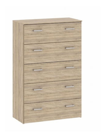 Moderna i praktična komoda s 5 ladica koje se jednostavno otvaraju bez ručki.