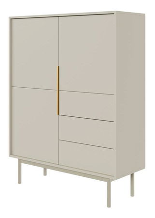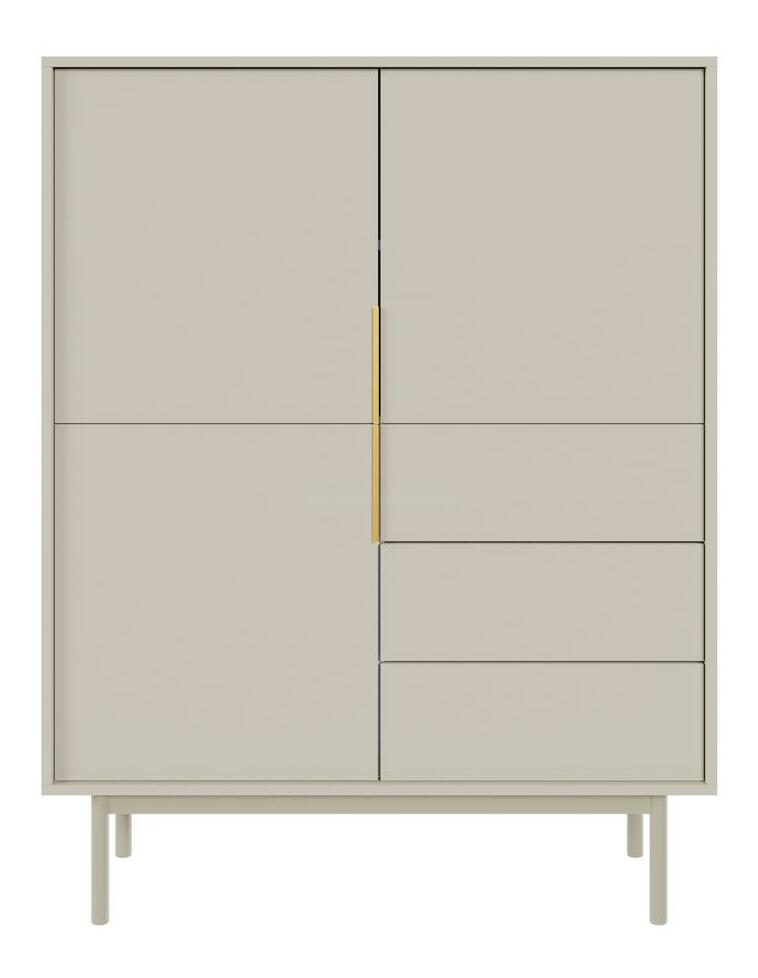 PrikazBirate moderan namještaj koji će vam služiti godinama. Volite jednostavnost i klasične linije. Odabirom ove kolekcije unesite u svoj interijer elegantan stil i dašak svježine. Visoka komoda savršen je spoj funkcionalnosti i elegancije. Klasična boja u kombinaciji sa zlatnom, produženom ručkom daje prostoru profinjen i moderan izgled. Komoda izrađena od kvalitetne laminirane ploče impresionira ne samo izgledom nego i izdržljivošću. Masivne drvene noge daju joj lakoću i stabilnost. Dizajneri su obratili pozornost na svaki detalj, stvarajući komad namještaja koji savršeno pristaje suvremenom interijeru. Dodatna prednost su tri praktične ladice koje nude dovoljno prostora za pohranu. Zahvaljujući mehanizmu tihog zatvaranja, ladice se otvaraju i zatvaraju glatko i bez buke, čineći korištenje komode ugodnim iskustvom. Minimalistički dizajn i visoka kvaliteta izrade čine ovaj komad savršenim dodatkom modernom elegantnom interijeru. Detalji proizvoda: korpus od laminirane iverice Cashmere 5981 BS debljine 16 mm, otporan na ogrebotine i vlagu, ojačana konstrukcija debljine 0,8 mm, rubovi debljine 0,45 mm, stražnja strana ojačana papirom, ladice na kugličnim vodilicama s push-to-open funkcijom, šarke s tihim zatvaranjem.
