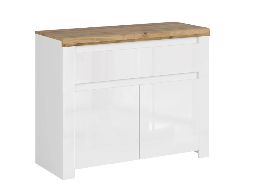 Komoda Vilgi 2D1S (visoki bijeli sjaj + Hrast wotan)