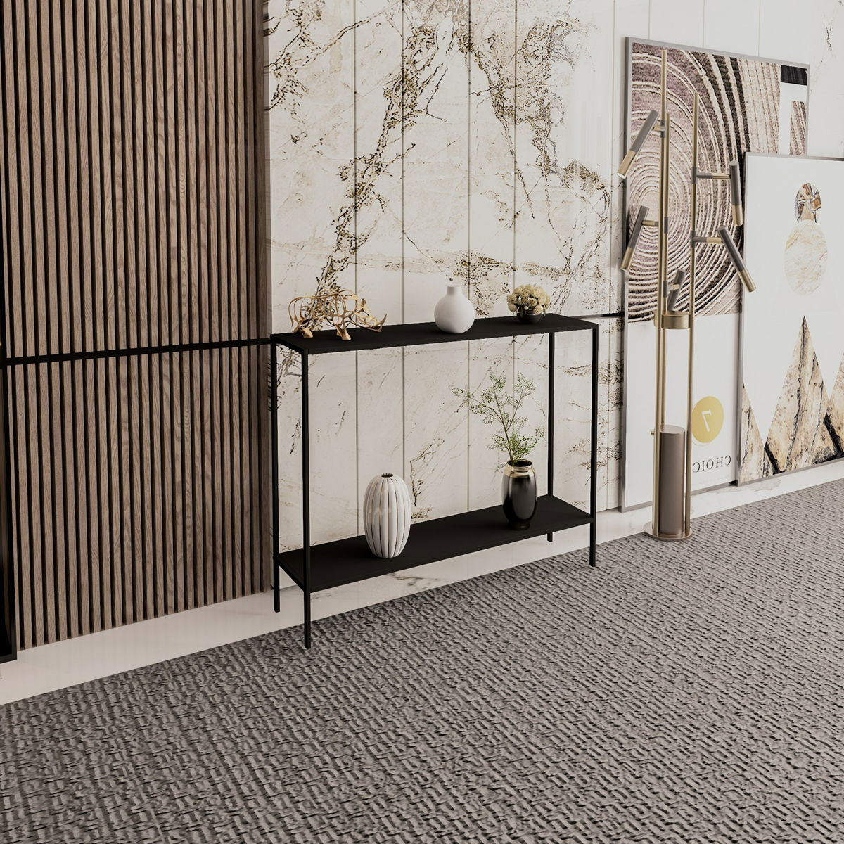 Konzolni stolić - Ken (Crni) elegantan je i praktičan komad namještaja prikladan za svaki dom. S visinom od 78 cm, širinom od 83 cm i dubinom od 21 cm, nudi dovoljno prostora za organizaciju različitih predmeta. Njegova crna boja dodaje interijeru moderan i sofisticiran izgled. Konzolni stolić izrađen je od kvalitetnih materijala koji jamče dugotrajnost i otpornost. Njegov kompaktan dizajn omogućuje postavljanje u dnevni boravak, hodnik ili čak ured. Nabavite ovu praktičnu i stilsku konzolu kako biste imali prostor za organizaciju i izlaganje svojih omiljenih predmeta.