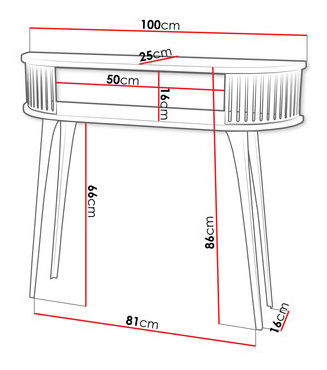 Konzolni stolić idealan je izbor za one koji traže udobnost i stil. Iako je ovalna konzola Mozimo nenametljiva, ona je doista praktičan model. Savršeno će funkcionirati u mnogim interijerima. Može se koristiti kao postolje za odlaganje sitnica ili kao stalak za razne dekoracije. Izgledat će odlično u modernim interijerima, dodajući stil i funkcionalnost. Konzola je postavljena na visokim nogama izrađenim od čelika. Nudi dvije ploče povezane ukrasnim čeličnim umetkom. Varijanta je dostupna u više boja, što vam omogućuje savršeno usklađivanje s vašim aranžmanom. Dimenzije: širina: 100 cm, visina: 86 cm, dubina: 25 cm. Izvedba: laminirana iverica debljine 18 mm, ABS rub, središnji dio koji spaja gornju i donju ploču izrađen je od čelika s praškastim premazom, noge izrađene od čelika, praškasto lakirane crnom bojom. Jamstvo: 24 mjeseca.