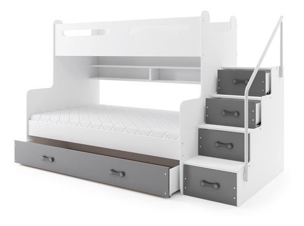 Krevet na kat 120 x 200 cm Moxxo 3 (bijela + grafit) (s podnicom, madracem i prostorom za odlaganje)