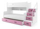 Krevet na kat 120 x 200 cm Moxxo 3 (bijela + ružičasta) (s podnicom, madracem i prostorom za odlaganje)