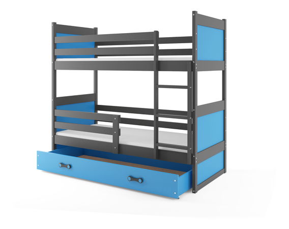 Krevet na kat 80 x 160 cm Ronnie B (grafit + plava) (s podnicom, madracem i prostorom za odlaganje)