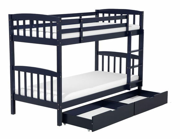 Krevet na kat 90 cm REWIND (tamnoplava) (s podnicom i prostorom za odlaganje)