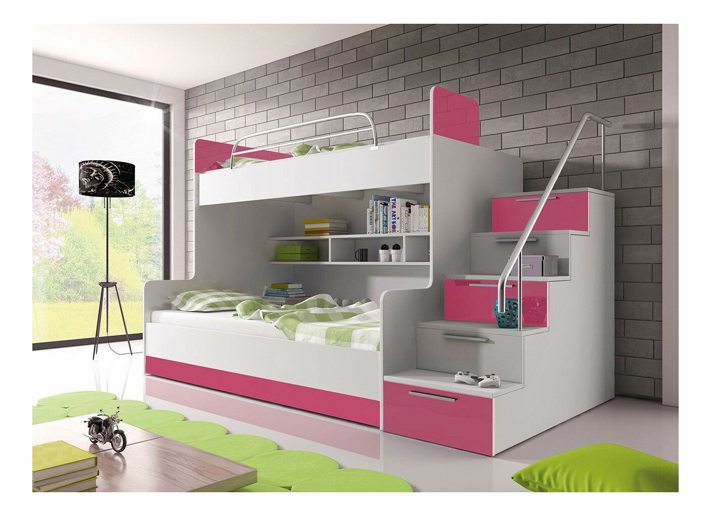 Krevet na kat Paralia II (bijela + bijeli sjaj + ružičasti sjaj) (D)