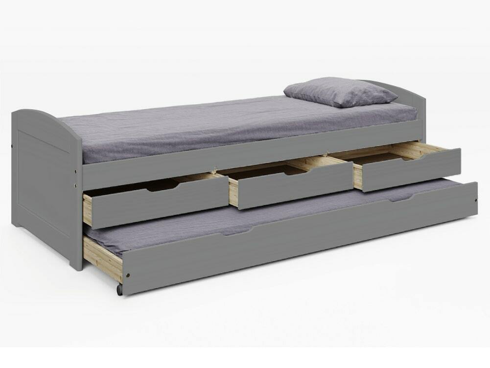 Pomoćni ležaj na izvlačenje, pomoćni ležaj je na kotačima s podnicom od letvice (lesonit), tri ladice, prostor za odlaganje, isporučuje se bez madraca
