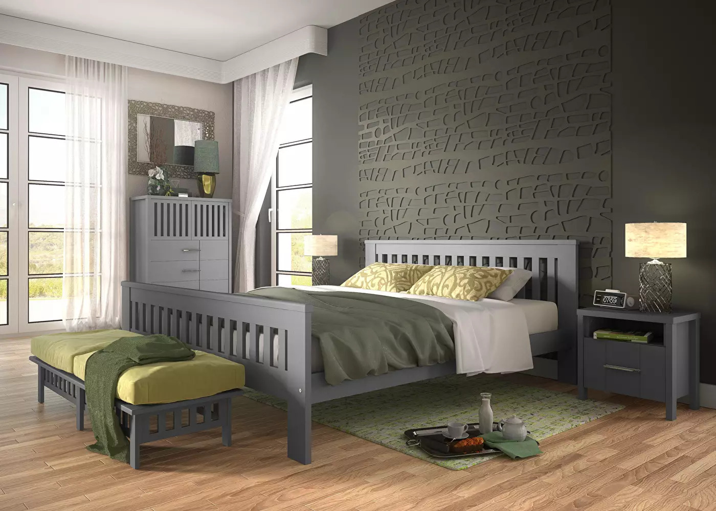 U spavaću sobu možete unijeti djelić prirode zahvaljujući drvenim krevetima i krevetima od punog drva. Prirodni materijal daje prostoriji pravu udobnost, a također se odlikuje kvalitetom i izdržljivošću. Ako želite dašak elegancije, kupite moderan tapeciran krevet. Kombinirate li ga s odgovarajućim noćnim ormarićem, stolnom lampom i ormarom, vaša će spavaća soba biti moderna oaza mira.
