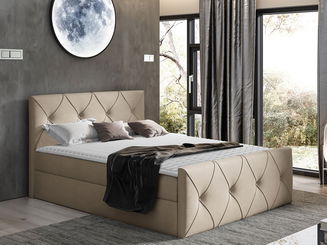 Bračni krevet 160 cm Gunzy (bež) (s podnicom i madracem) (s prostorom za odlaganje)