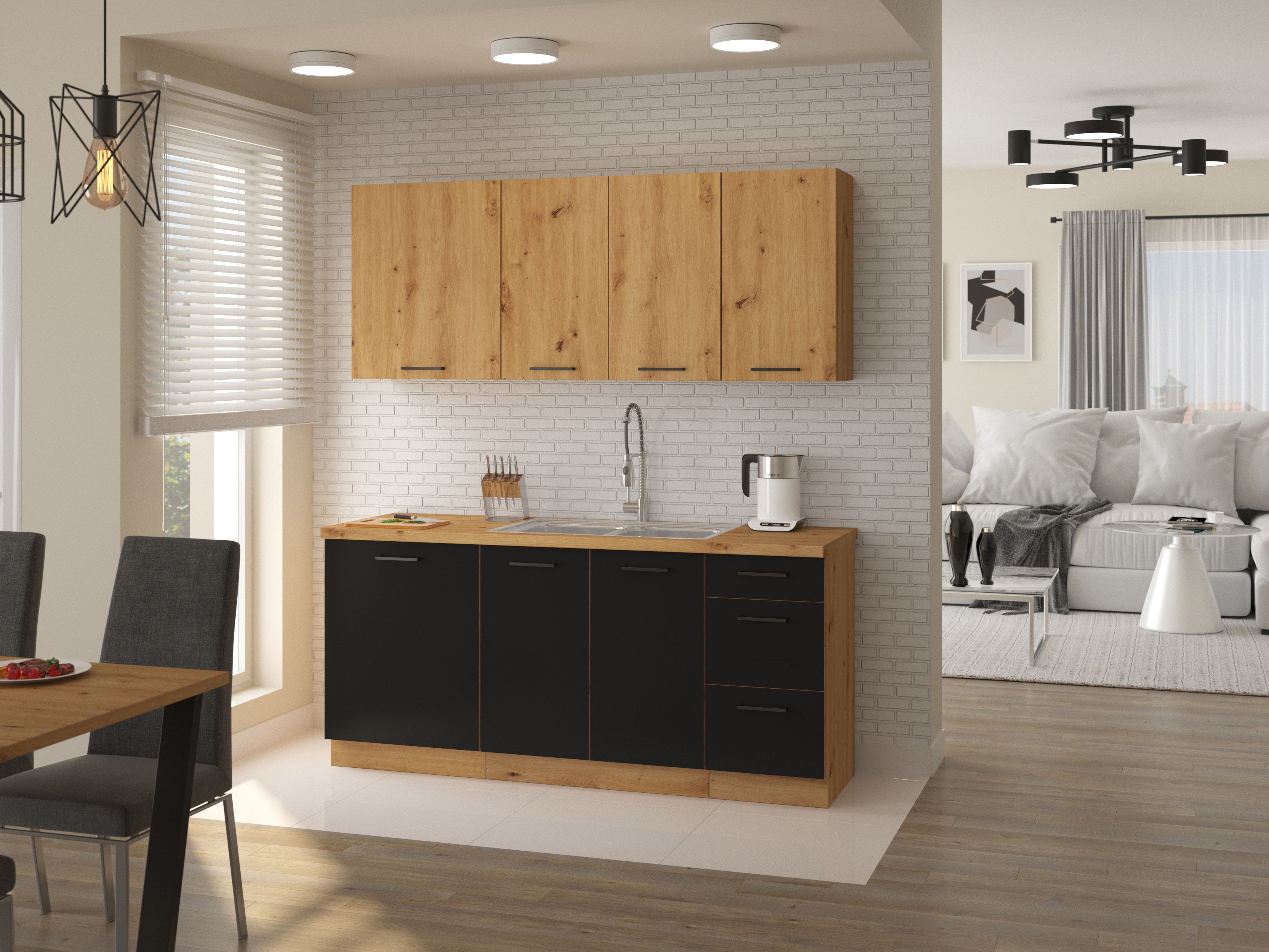 - Kuhinja 180 cm Miraluna (hrast artisan + crna mat)