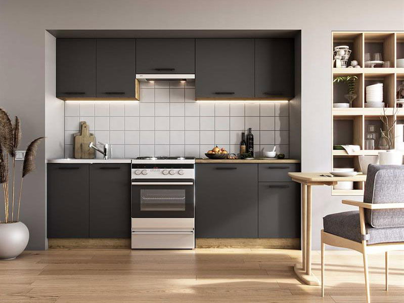 Kuhinja 240 cm Danna (tamnosiva + prirodno drvo)