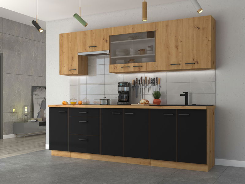- Kuhinja 260 cm Miraluna (hrast artisan + crna mat)
