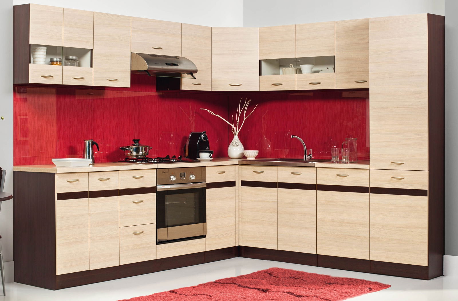 Kuhinja je izrađena od kvalitetne iverice debljine 15 mm. Korpus ormarića je u izvedbi hrasta Wenge, a fronte (ŠxDxV): vrata gornjih ormarića u izvedbi Rijeka svijetla. Donji ormarići su u izvedbi hrasta Wenge u kombinaciji sa svijetlim tonom Rijeka svijetla. U paketu se nalazi radna ploča (ŠxDxV) prema prikazu na slici, izrađena u izvedbi Rijeka svijetla s debljinom od 28 mm i obložena izdržljivom ABS trakom na rubovima, otpornom čak i na najveće opterećenje. Ova ABS traka je debljine 2 mm. Ormarići imaju podesive šarke (ŠxDxV): pant.
