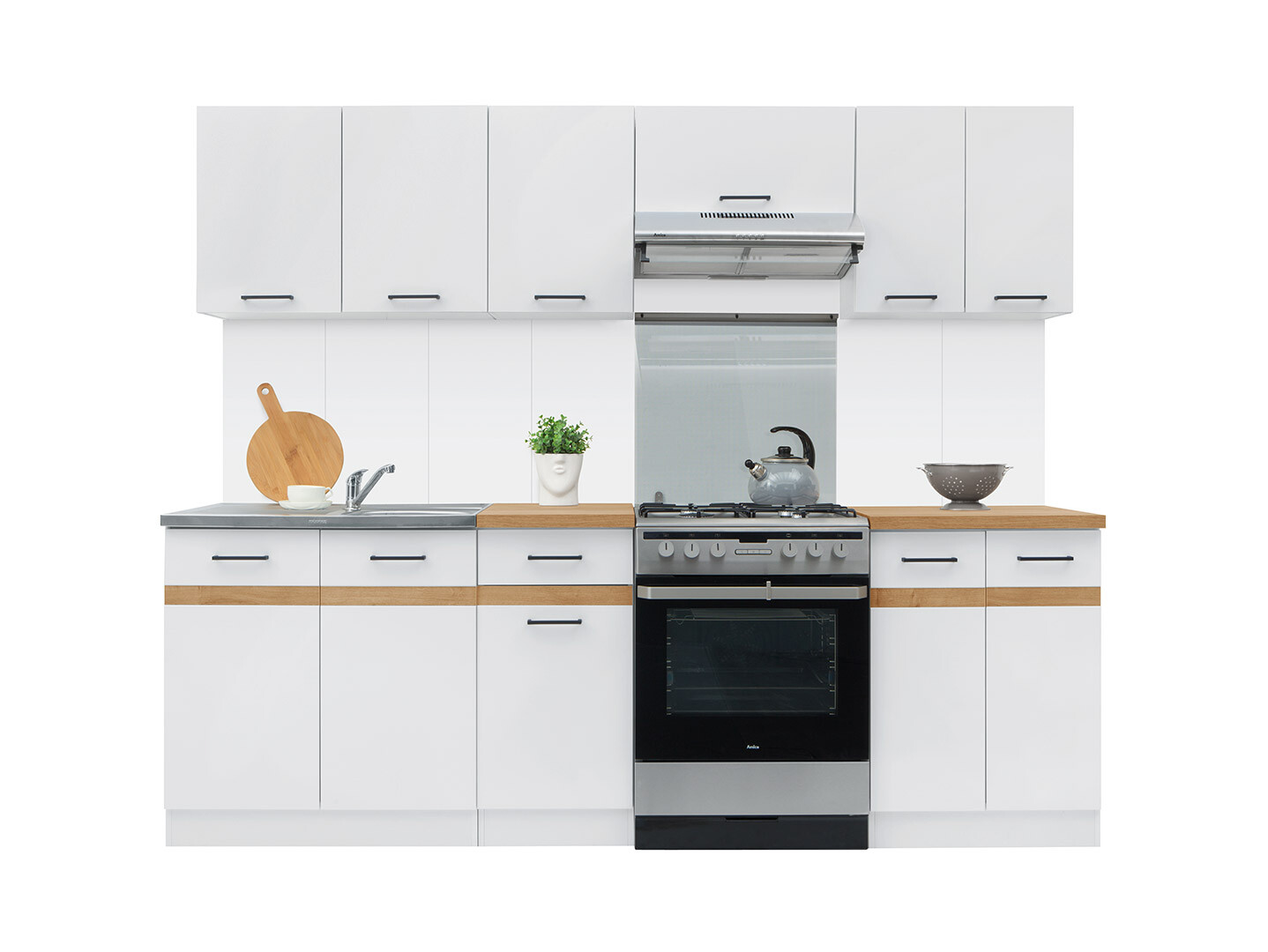 Kuhinja Junona line 240 cm sjaj bijeli + hrast craft zlatni