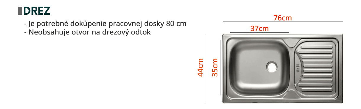 radna ploča nije uključena u cijenu – dvije radne ploče duljine 80 cm i 40 cm – s mogućnošću dodatne narudžbe.