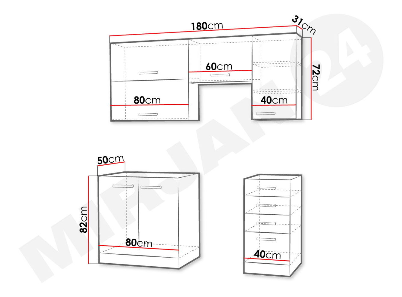 Kuhinja je idealan izbor za one koji traže udobnost i stil. Praktična kuhinja ili mala kuhinjica ne može bez funkcionalnog kuhinjskog namještaja. Obično se sastoji od ormarića i polica koje služe za pohranu kuhinjskog pribora i mjesta gdje se priprema hrana. Zato vam predstavljamo namještaj Multiline II, u kojem pažnja posvećena i najmanjim detaljima obrade daje ovoj kuhinji potpuniji i elegantniji karakter. Kuhinjski namještaj Multiline II uklapa se u svaki interijer. Opremljena je zidnim ormarićima, ladicama i ormarićem ispod umivaonika. Pažljivo odabrana boja može postati izvrsna dekoracija interijera. Pogledajte kako izgleda kuhinjski namještaj Multiline u našoj inspiraciji "Moderna kuhinja". Navedena cijena uključuje sljedeće komponente: Ormarići gornji: Zidni ormarić Multiline 80 GU-72: širina: 80 cm, visina: 72 cm, dubina: 31 cm, Zidni ormarić Multiline 60 OK-40: širina: 60 cm, visina: 40 cm, dubina: 31 cm, Zidni gornji ormarić Multiline 40 G-72 F: širina: 40 cm, visina: 72 cm, dubina: 31 cm Ormarići donji: Donji ormarić Multiline 40 D 4S BB: širina: 40 cm, visina: 82 cm, dubina: 60 cm, Ormarić ispod sudopera Multiline 80 ZL 2F BB: širina: 80 cm, visina: 82 cm, dubina: 52 cm, Boje: mogućnost odabira boja ovdje Izrađeno: korpus: iverica laminirana - boja: siva, vrata: MDF ploča obrubljena PVC-om, metalne ručke, u stojećim ormarićima širine 40 cm i 60 cm, vrata su univerzalna - s mogućnošću montaže kao desna ili lijeva, sustav tihog zatvaranja, sudoper s mogućnošću naručivanja - uz nadoplatu, radna ploča nije uključena u cijenu - dvije radne ploče duljine 80 cm i 40 cm - s mogućnošću naručivanja, boja radne ploče: tamni travertin, mogućnost naručivanja pregrade za pribor za donji ormarić Multiline 40 D 4S BB, u sustavu kuhinje Multiline postoji mogućnost odabira ormarića iz seta - kreirati vlastitu kuhinju odabirom pojedinačnih elemenata - kolekcija Multiline, u cijenu nije uključeno: zidna ploča, kućanski aparati i dekorativni elementi Jamstvo: 24 mjeseca