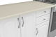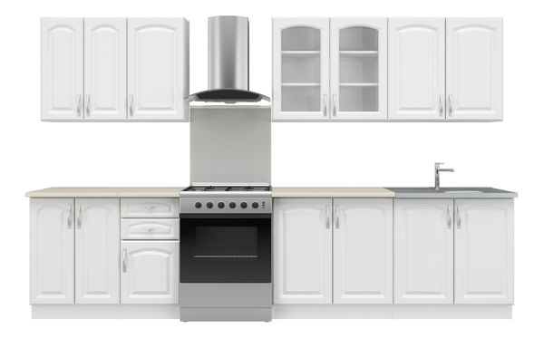 Elegantna kuhinja koja će vam pružiti dovoljno prostora za svakodnevno kuhanje i pečenje. U donjem dijelu su ladice za kuhinjski pribor, ormarići i pult. Gornji ormarići i vitrina pružaju dovoljno prostora za odlaganje tanjura i čaša. Vratašca se otvaraju pomoću zaobljenih ručki.